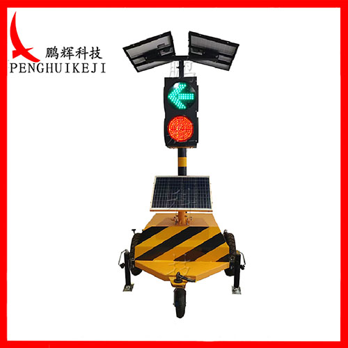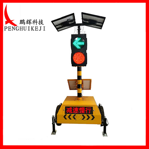 四面箭頭加滿屏信號燈,控制器為液晶屏顯示或無線信號機控制,上顯示紅、黃、綠三色同屏左轉箭頭顯示,下顯示紅、黃、綠三色同屏滿屏顯示。配有可移動小車,用于應對緊急停電及其它情況的需要。內含膠體電池,無需另接電源。配太陽能或交流220V充電,可在陰雨天下連續工作10天。